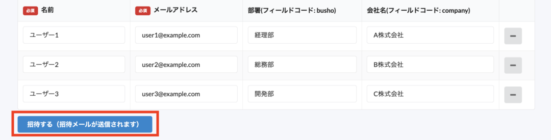 ④ 上記の設定で、「管理者用」のページに権限がある人は全てのレコードが確認でき、「一般社員用」のページに権限がある人は自分のメールアドレスと一致するレコードのみ確認することができます。